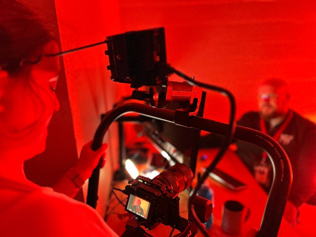 Rather than relying on voice actors for the AI, the film cleverly uses screen capture to show AI-generated text on-screen. This gave the dialog a unique cadence and allowed the audience to feel immersed in the conversation as it unfolded. Talis’s responses, filmed in a minimal setup, contrast the sterile corporate text with grounded human presence.
